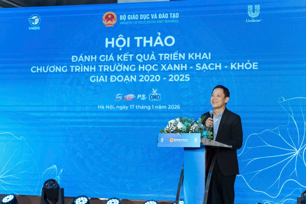 Phát biểu khai mạc Hội thảo, GS.TS. Lê Anh Vinh – Viện trưởng Viện Khoa học Giáo dục Việt Nam nhấn mạnh Chương trình “Phát triển Trường học Xanh – Sạch – Khỏe” là dự án hợp tác dài hạn, có ý nghĩa thiết thực trong việc nâng cao chất lượng môi trường học đường và sức khỏe học sinh tiểu học. Ông đánh giá cao sự phối hợp chặt chẽ, hiệu quả giữa Bộ Giáo dục và Đào tạo, Viện Khoa học Giáo dục Việt Nam và công ty Unilever Việt Nam trong suốt quá trình triển khai Chương trình, đồng thời khẳng định đây là mô hình hợp tác công – tư tiêu biểu, phù hợp với định hướng đổi mới giáo dục theo Chương trình Giáo dục phổ thông 2018.