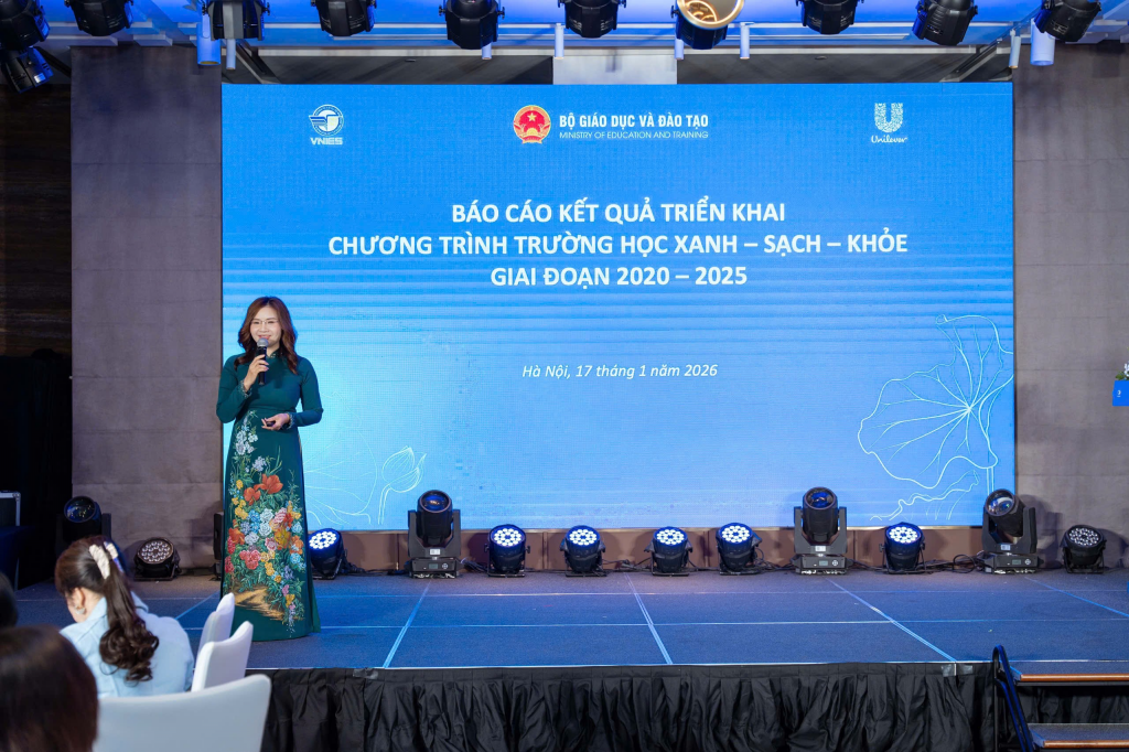Trình bày Báo cáo tổng kết Chương trình “Trường học Xanh – Sạch – Khỏe” giai đoạn 2020 – 2025, Bà Đoàn Thị Thúy Hạnh cho biết: trong 5 năm qua, Chương trình đã được triển khai tại nhiều cơ sở giáo dục, góp phần cải thiện cảnh quan sư phạm, nâng cao ý thức bảo vệ môi trường, chăm sóc sức khỏe học đường và hình thành lối sống xanh, lành mạnh cho học sinh. Nhiều mô hình hay, cách làm sáng tạo đã được xây dựng và nhân rộng, tạo chuyển biến tích cực trong cộng đồng nhà trường. Chương trình đã hỗ trợ nâng cấp cơ sở hạ tầng vệ sinh cho 350 trường tiểu học, đồng thời triển khai nội dung giáo dục “Xanh – Sạch – Khỏe” tại 1.894 trường, với khoảng hơn 1 triệu học sinh tiểu học được hưởng lợi trực tiếp. Đặc biệt, bộ 16 bài giảng điện tử về vệ sinh cá nhân, dinh dưỡng và bảo vệ môi trường đã được Viện Khoa học Giáo dục Việt Nam chuẩn hóa theo Chương trình Giáo dục phổ thông 2018, tạo nền tảng chuyên môn vững chắc cho việc tích hợp vào dạy học và tổ chức các hoạt động giáo dục tại nhà trường.