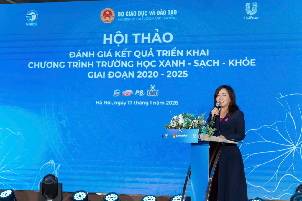Đại diện đơn vị tài trợ, Bà Lê Thị Hồng Nhi – Phó Tổng Giám đốc Truyền thông, Đối ngoại và Phát triển bền vững, Unilever Việt Nam đã đánh giá cao hiệu quả của công tác triển khai Chương trình tại các cơ sở giáo dục trong những năm qua và khẳng định cam kết tiếp tục đồng hành cùng Bộ Giáo dục và Đào tạo, Viện Khoa học Giáo dục Việt Nam trong việc triển khai các hoạt động trong giai đoạn tiếp theo để cải thiện điều kiện vệ sinh trường học, nâng cao sức khỏe học đường và lan tỏa lối sống xanh, lành mạnh bền vững tới thế hệ trẻ và cộng đồng.