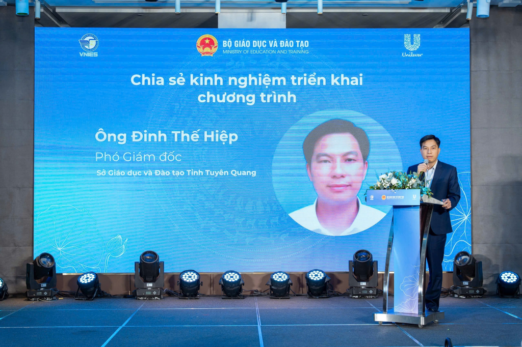 Tại Hội thảo, Ông Đinh Thế Hiệp – Phó Giám đốc Sở Giáo dục và Đào tạo tỉnh Tuyên Quang đã chia sẻ những kinh nghiệm thực tiễn trong quá trình triển khai Chương trình tại địa phương, nhấn mạnh hiệu quả của việc kết hợp giữa đầu tư hạ tầng, tập huấn giáo viên và tổ chức các hoạt động giáo dục trải nghiệm cho học sinh.