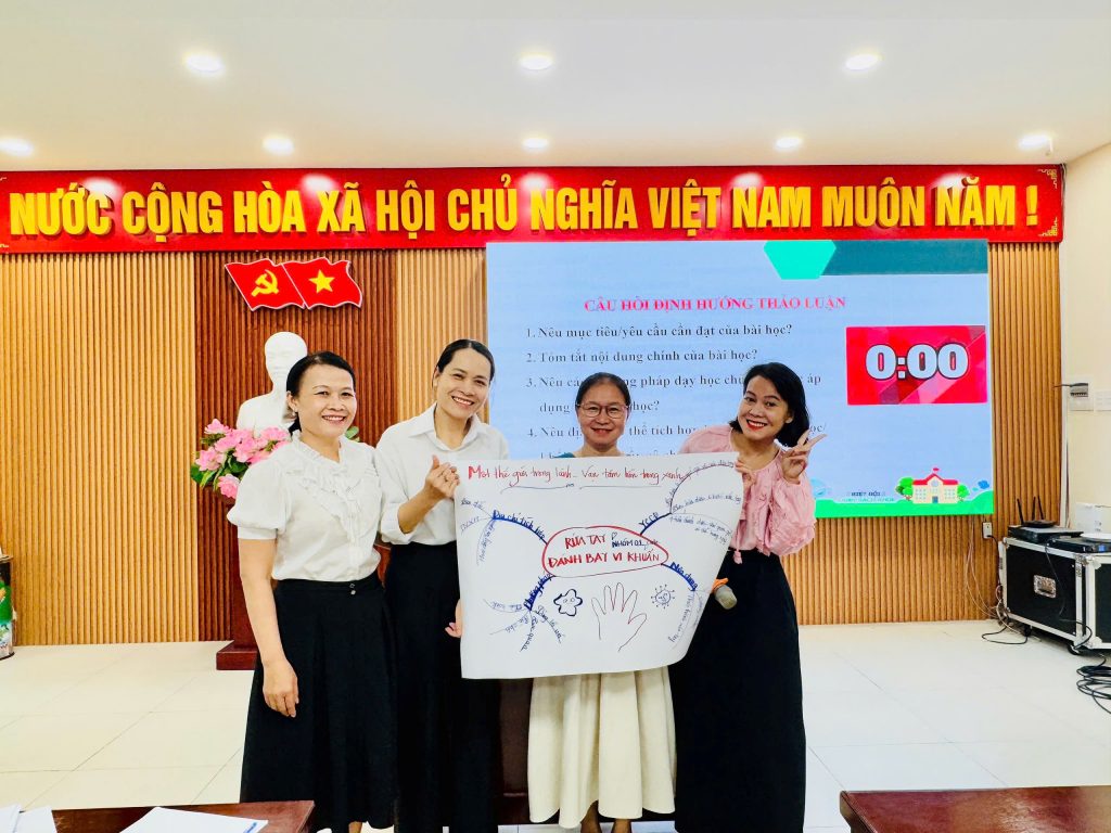 Đợt tập huấn diễn ra trong 1 ngày với nhiều hoạt động sôi nổi, thú vị. Các học viên được tìm hiểu về bộ tài liệu, phương pháp và kĩ thuật tổ chức dạy học trong nhà trường, cách thức triển khai các hoạt động trong nhà trường.